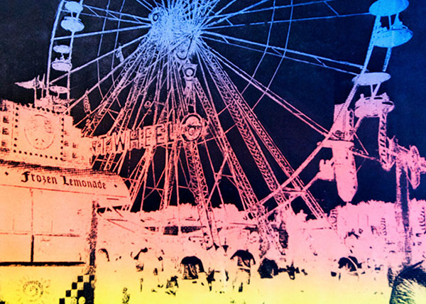 Pure Etch, Aquatint. Printed on Hahnemühle and Rives BFK etching papers... READ MORE A photo etching on copper of ghostly figures captured in a blaze of light at an annual county fair I attend each year in western Massachusetts called, The Big E. If you’ve never been...READ MORE View Project