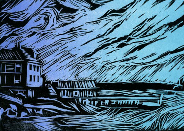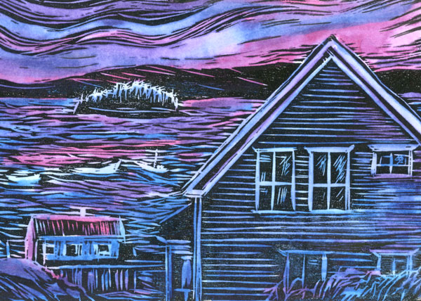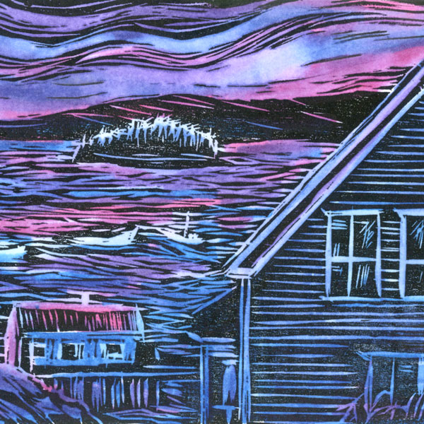 Printed from a block carved in birch plywood. Image size: 5×8 inches. Two Varied Editions of 25 prints. Printed on Savoy Bright white card stock on a 1930’s Poco proof press, each unique print is then hand colored. Also available in black ink on Kitakata rice paper. Robin lives across the street from us in Stonington, Maine. Her house features prominently in our lovely view of the harbor...READ MORE View Project
